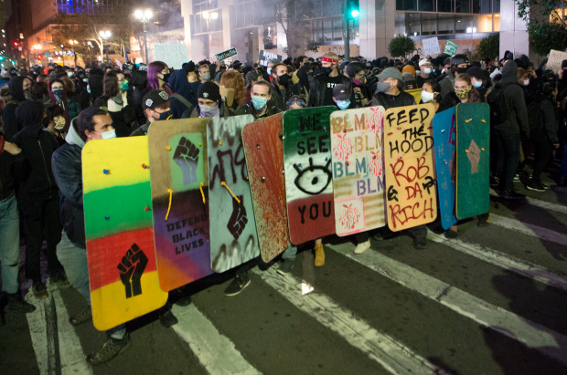 Police had increased staffing for the protest. On Wednesday night, protesters set fires, broke windows and vandalized businesses.